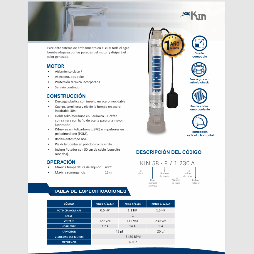 MOTOBOMBA SUMERGIBLE TORNADO 1/2 HP