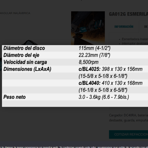 - Esmeriladora Inalámbrica 4-1/2″ 40V