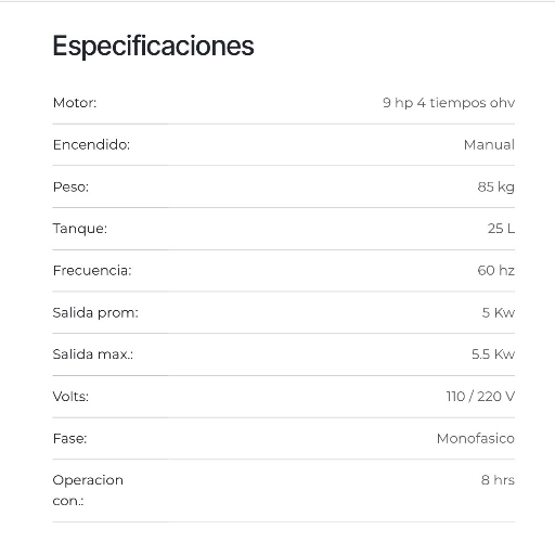 Motor a Gasolina | 9 HP | 5.5 kW Max. | Monofásico | 110 / 220 V | Cod. Producto: GP5500