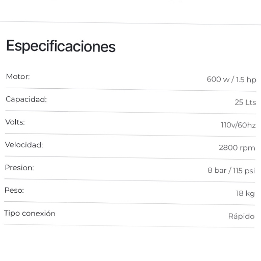 COMPRESOR DE AIRE LIBRE DE ACEITE 25 LTS